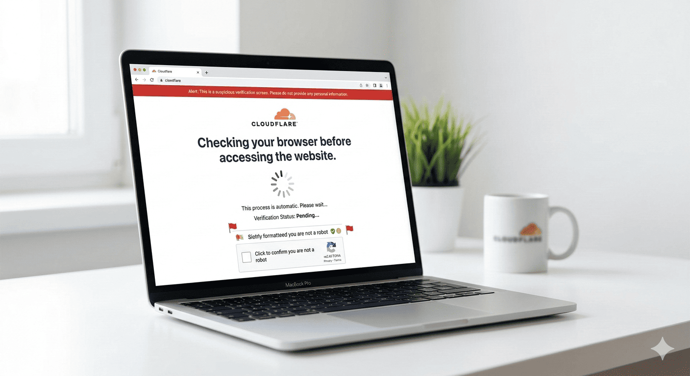 Website hiển thị giao diện xác minh Cloudflare giả để lừa người dùng tải phần mềm độc hại tuyệt đối không được làm theo